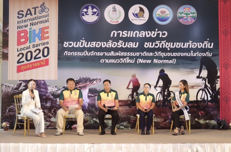 การกีฬาแห่งประเทศไทย (กกท.) ร่วมกับจังหวัดอุบลราชธานี จัดแถลงข่าว “SAT International New normal Bike local series 2020” กิจกรรมปั่นจักรยานสัมผัสธรรมชาติและวิถีชุมชนของคนในท้องถิ่นวันที่ 26 ก.ย.นี้ โดยมี นายศุภสิทธิ์ กอเจริญยศ รองผู้ว่าราชการจังหวัดอุบลราชธานี เป็นประธานงานแถลงข่าว ร่วมด้วย ว่าที่ร้อยตรีหญิง กาญจนาวาสนาสิทธิ ผู้อำนวยการสำนักงานการกีฬาแห่งประเทศไทย จังหวัดอุบลราชธานี นายพงษ์ศักดิ์ มูลสาร นายกสมาคมกีฬาแห่งจังหวัดอุบลราชธานี และคุณชนิกา ชาวง ทูตการกีฬา จังหวัดอุบลราชธานี ร่วมแถลงข่าว ณ อรอุบลสตูดิโอ อ.เมือง จ.อุบลราชธานี