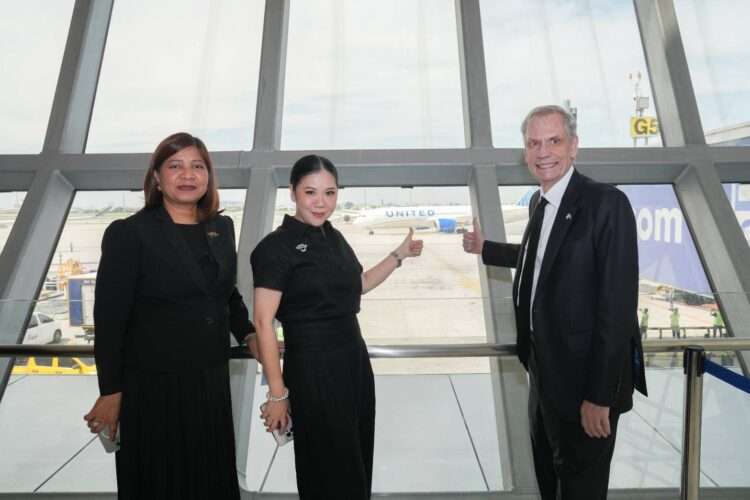 26 ตุลาคม 2568 – การท่องเที่ยวแห่งประเทศไทย (ททท.) ร่วมต้อนรับเที่ยวบินปฐมฤกษ์ UA820 เส้นทางลอสแอนเจลิส–กรุงเทพฯ (แวะพักที่ฮ่องกง) ของสายการบิน United Airlines ณ ท่าอากาศยานสุวรรณภูมิ นับเป็นการกลับมาทำการบินของสายการบินสัญชาติสหรัฐอเมริการายแรกในรอบกว่า 11 ปี สร้างหมุดหมายเชิงกลยุทธ์ภายใต้แผน Airline Focus ของ ททท. ในการขยายและกระจายนักท่องเที่ยวคุณภาพจากตลาดระยะไกลสู่ประเทศไทย โดยพิธีต้อนรับได้รับเกียรติจากนางสาวฐาปนีย์ เกียรติไพบูลย์ ผู้ว่าการ ททท. นายโรเบิร์ต เอฟ. โกเดค เอกอัครราชทูตสหรัฐอเมริกาประจำประเทศไทย ผู้บริหารสายการบิน United Airlines และหน่วยงานพันธมิตรด้านการบินร่วมให้การต้อนรับอย่างอบอุ่น