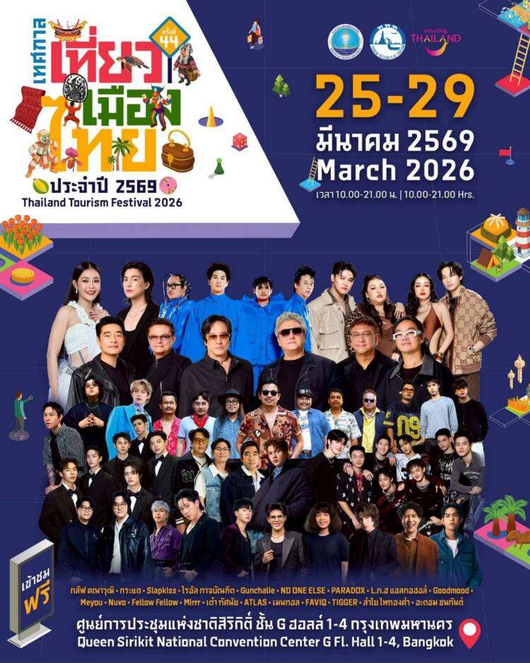 ทั้งนี้ ททท. ขอเชิญชวนนักท่องเที่ยวและประชาชนร่วมสัมผัสประสบการณ์เที่ยวไทยในมุมมองใหม่ พร้อมค้นหาแรงบันดาลใจในการออกเดินทางไปกับ “เทศกาลเที่ยวเมืองไทย ครั้งที่ 44 ประจำปี 2569” เข้าร่วมงานฟรี ระหว่างวันที่ 25–29 มีนาคม 2569 ณ ศูนย์การประชุมแห่งชาติสิริกิติ์ เดินทางสะดวกด้วยรถไฟฟ้า MRT สถานีศูนย์การประชุมแห่งชาติสิริกิติ์ หรือสอบถามข้อมูลเพิ่มเติมได้ที่ TAT Contact Center โทร. 1672 Travel Buddy