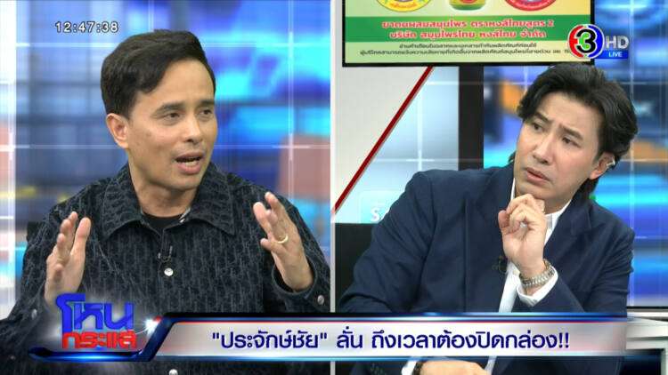 รายการ โหนกระแส วันที่ 7 มี.ค.68 ดำเนินรายการแทน “หนุ่ม กรรชัย กำเนิดพลอย” ผลิตในนามบริษัท ดีคืนดีวัน จำกัด ออกอากาศทุกวันจันทร์-ศุกร์ เวลา 12.35 น. ทางช่อง 3 กดหมายเลข 33 สัมภาษณ์ “ประจักษ์ชัย ไหทองคำ” ถึงเรื่องราวต่างๆ ที่เกิดขึ้น มาพร้อม “ทนายแก้ว ดร.มนต์ชัย จงไกรรัตนกุล”