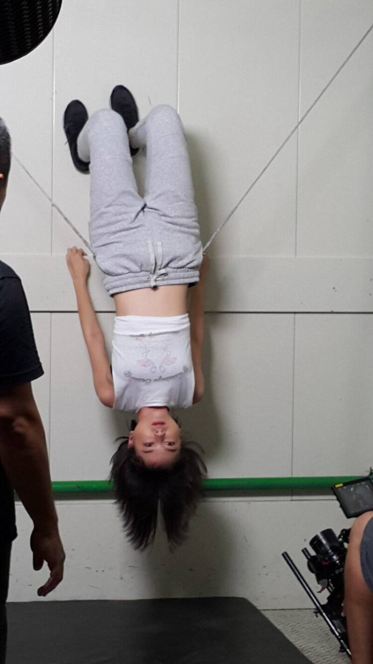 จากนั้นจึงมาถ่ายเจาะซีนที่สาวเฟินโดนสาวป่านเหวี่ยงเข้ากำแพง และเฟินต้องตีลังกาหนีไปเกาะฝาผนัง แล้วตีลัง กากลับหัวสไลด์ลงมา แม้จะมีนักแสดงแทนแต่เพื่อให้ภาพสมจริง เฟินจึงต้องขึ้นสลิงและห้อยหัวลงมาจริงๆ เพื่อให้ตากล้อง เก็บภาพ สามรอบ แม้จะมีทีมงานคอยดูแลอย่างใกล้ชิด แต่ก็เล่นเอาเจ้าตัวมึนหัวเล็กๆ จากนั้นจึงมา เก็บซีนสายป่าน และ เฟินต่อสู้กันต่ออีกเล็กน้อย…หลังจากถ่ายทำเสร็จเรียบร้อยแล้ว สาวเฟินเผยว่า “สนุกดีค่ะ ไม่เคยเล่นบู๊ มาก่อนเลย ก่อน ถ่ายก็มีมาซ้อมคิวกันก่อน พี่ๆ ก็ช่วยสอนเทคนิคต่างๆ ให้ค่ะ เพิ่งเคยร่วมงานครั้งแรกกับ พี่ป่านค่ะ เจอกันครั้ง แรกก็บู๊กันเลยค่ะ (ยิ้ม) เรียกว่าเป็นฉากเปิดเรื่องด้วย ซึ่งผลของการต่อสู้จะเป็นอย่างไรฝากติดตาม ด้วยนะคะ”