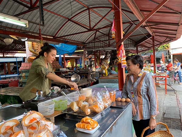 ต่อมาน้ำหวานพาไปชม OTOP เฟอร์นิเจอร์ไม้พาเลท ซึ่งปกตินำไปออกบูธงาน OTPO ต่างๆ และส่งออกขายตามตลาด รวมทั้งจังหวัดอื่นๆ ทั้งอีสานและภาคใต้ ก่อนจะแวะหาวัตถุดิบที่ตลาดบ้านเชี่ยน ซื้อ “ปลาฉลาด” เพื่อทำเมนู “ทอดมันปลาฉลาด” สูตรคุณนาย