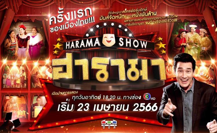 ต้อนรับความบันเทิงครั้งใหม่กับรายการ “ฮารามา (HARAMA)” เมื่อเหล่าซุปตาร์ทั่วไทยจะมาสวมบทบาทในหนังและละครดังที่คุณคิดถึง สร้างเสียงหัวเราะทำให้ทุกเย็นวันหยุดไม่เหงาอีกต่อไป นำทัพความสนุกโดยพิธีกรอารมณ์ดี “วิลลี่ แมคอินทอช” ออกอากาศทุกวันอาทิตย์ เวลา 18.20 น. เริ่มวันอาทิตย์ที่ 23 เมษายน 2566